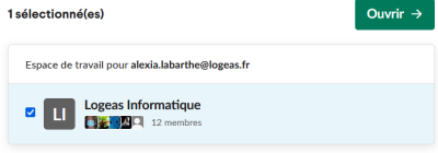 | Sélectionner l'équipe de travail Logeas Informatique puis Ouvrir | ![]() |