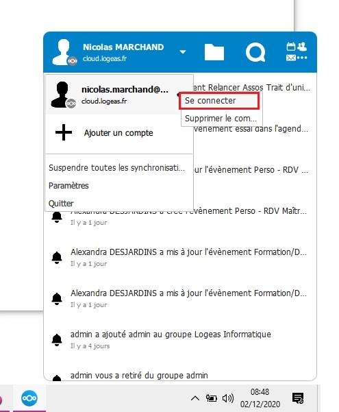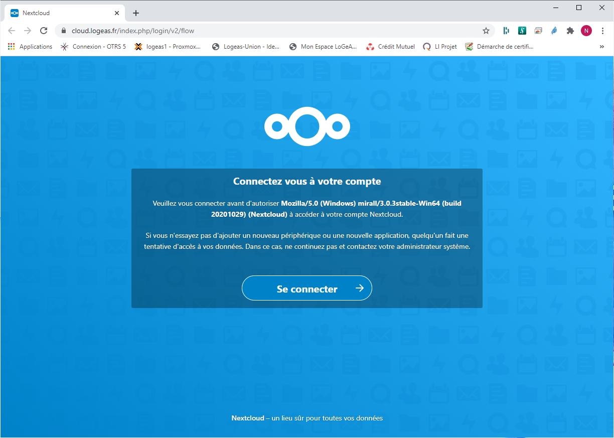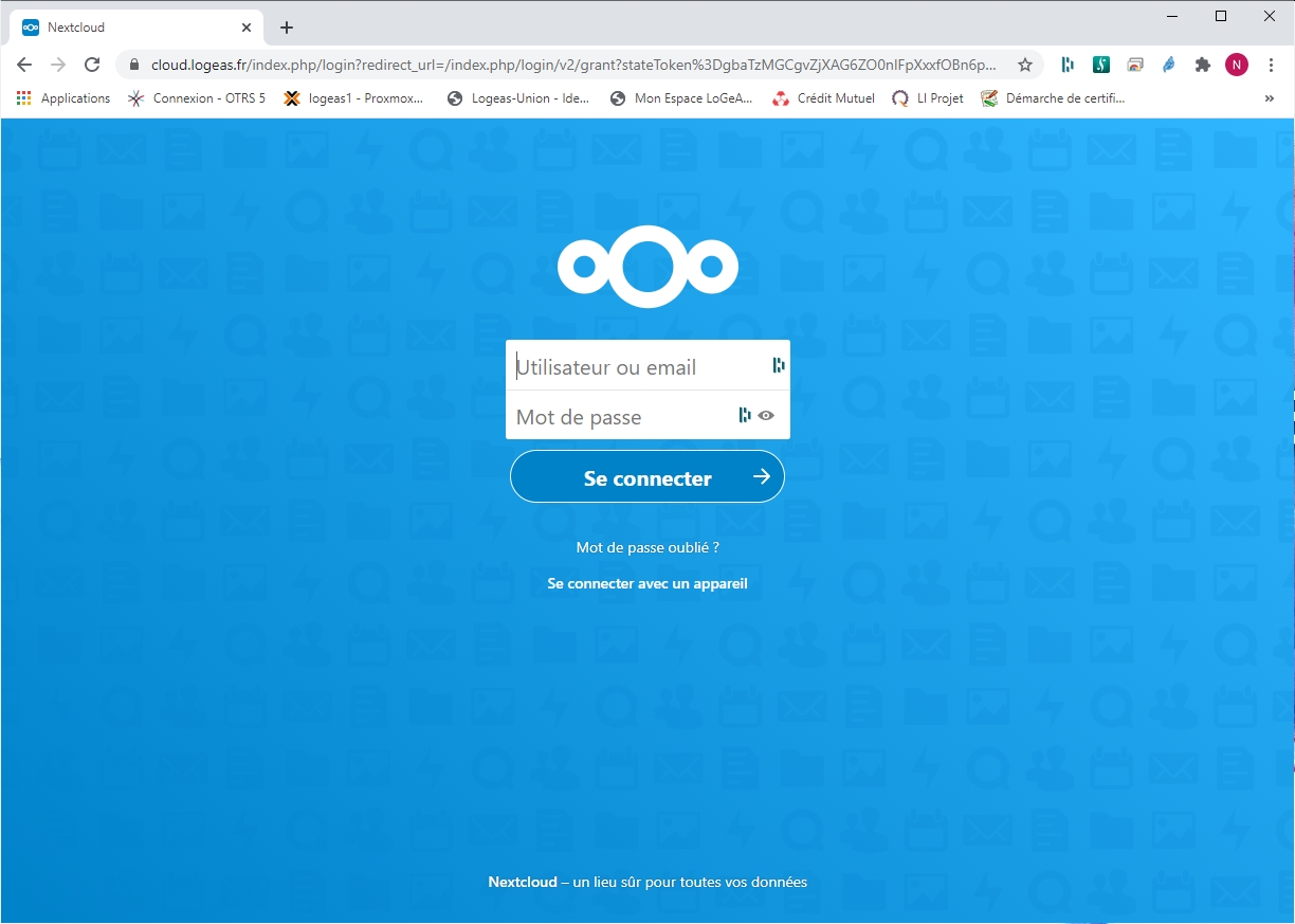 - Se connecter à http://cloud.logeas.fr/index.php/login