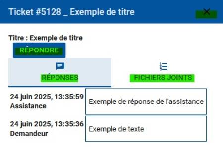 Pour consulter un ticket, que ce soit suite à une réponse de l'assistance ou simplement pour vérifier une procédure que vous avez demandé précédemment, il vous suffit simplement de cliquer sur le titre du ticket que vous souhaitez afficher.