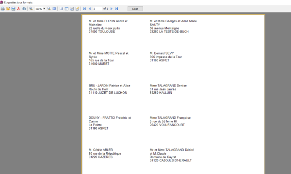 - L'écran de visualisation des enveloppes/étiquettes s'ouvre, on peut les imprimer.