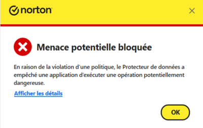 Norton bloque l'impression des états.